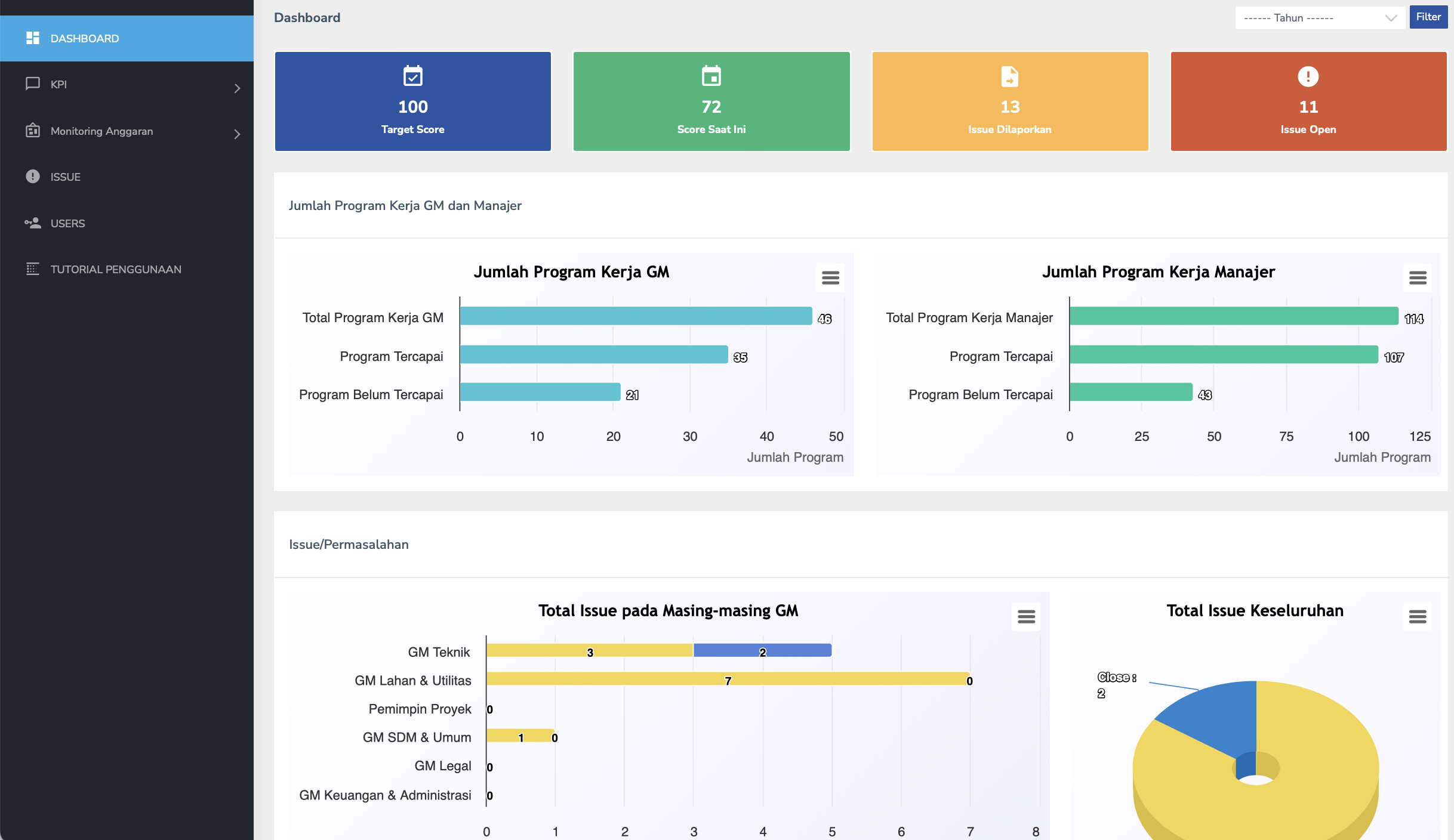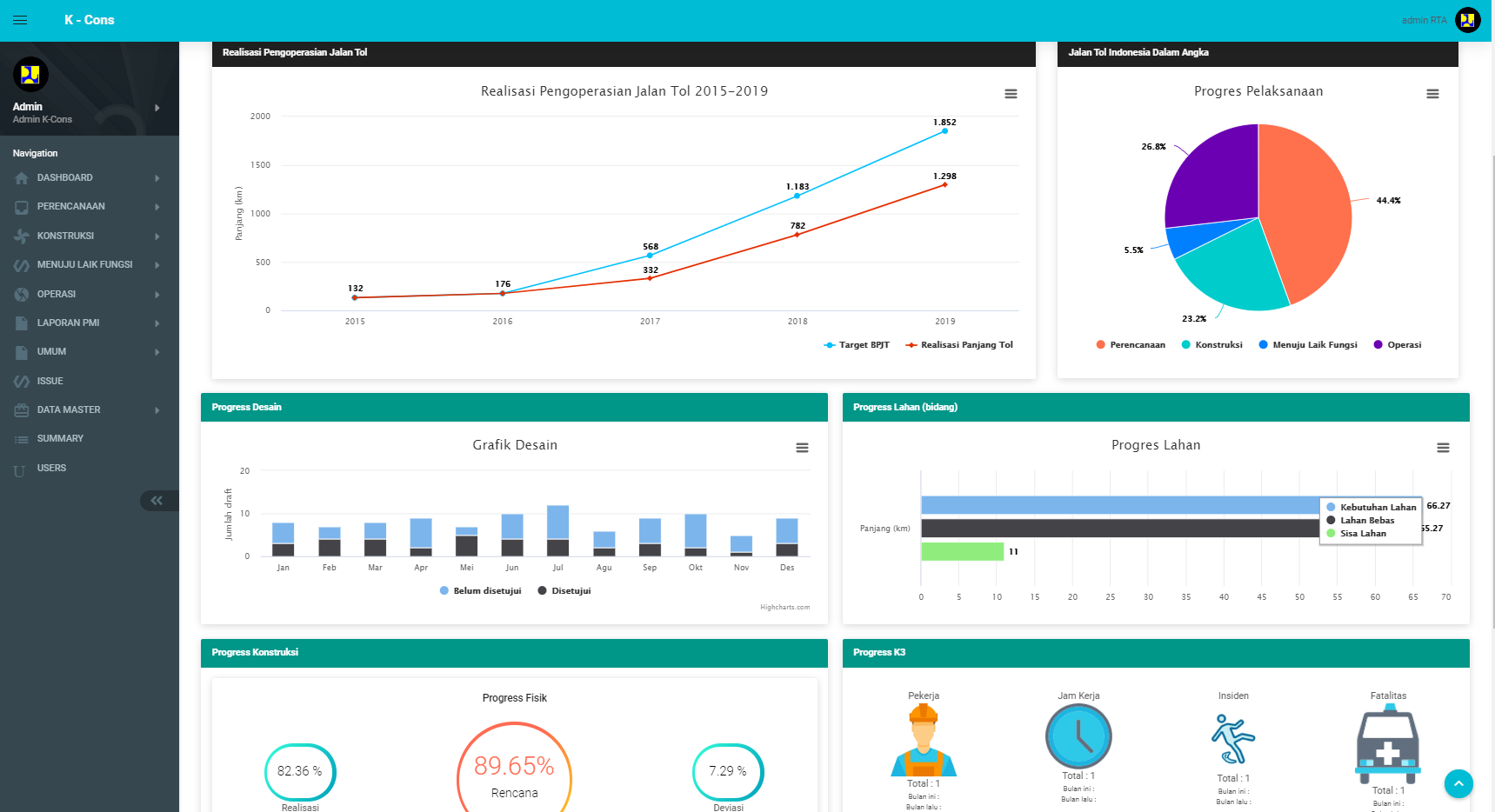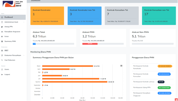 Pembuatan aplikasi web dashboard, pengelolaan dokumen, monitoring pekerjaan, company profile, dan sebagainya.